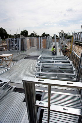 LEWIS oferuje wyjątkowe rozwiązania dla systemów budowlanych z lekką ramą stalową, prefabrykowanych modułowych oraz wolumenowych budynków. Wysoka nośność w połączeniu z niskim obciążeniem własnym sprawiają, że LEWIS® jest idealnym wyborem przy integracji podłogi betonowej/zasypkowej w systemach LGSF lub modułowych.